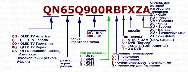 Например расшифровки номера модели телевизора Samsung на квантовых точках QN65Q900RBFXZA